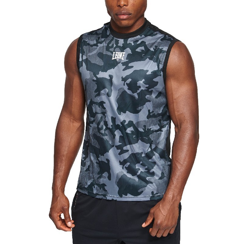 Camiseta sin mangas hecha 100% en poliéster. Prenda suave y cómoda, perfecta para entrenar y que permite libertad de movimiento, caracterizada por gráficos de camuflaje.