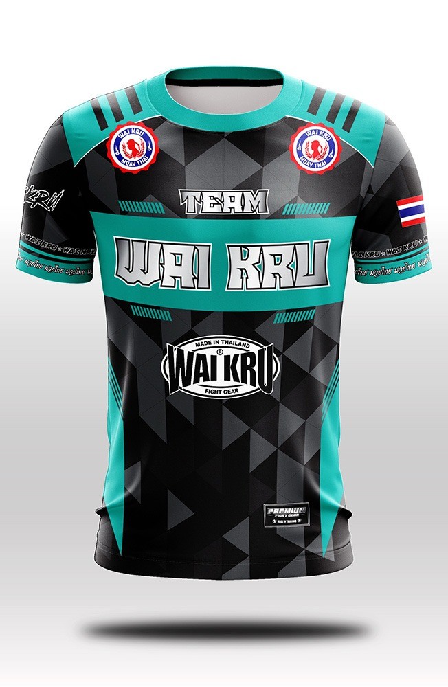 Camiseta de Muay Thai Wai Kru , fabricada en POLIESTER 145 mg de alta calidad , manga corta.