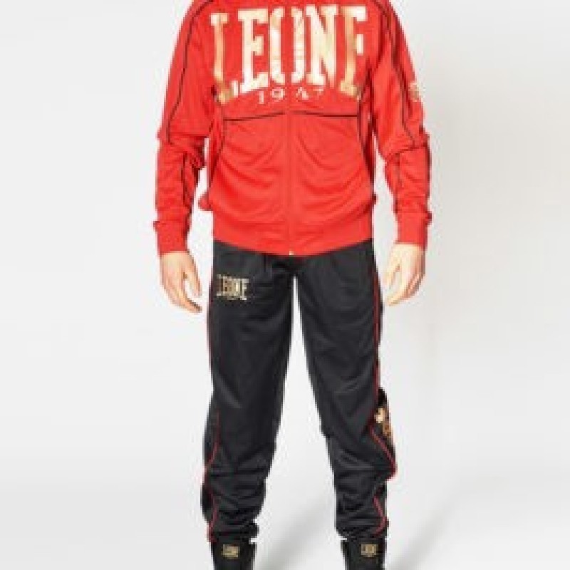 El chandal Leone Premium rojo es cómodo, práctico e impactante. El gran logo en el pecho y el acabado dorado lo embellecen y lo convierten en un traje adecuado para todos aquellos que quieran destacarse con una prenda nunca banal. Las letras laterales somos deportes de combate enriquecen los pantalones, mientras que los tobillos y los cordones de la cintura lo hacen aún más cómodo.