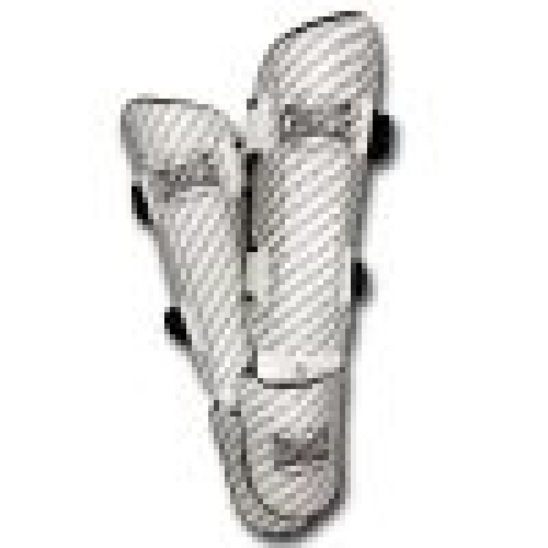 Espinillera muy ligera fabricada en piel artificial. Colores azul, blanco, negro y rojo.