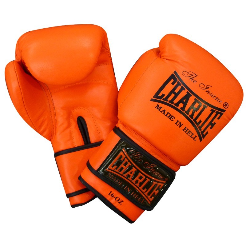 Guantes de boxeo Charlie Orange ,fabricados con piel de búfalo que disponen de relleno compuesto por cuatro capas y acolchado adicional en la palma. Interior relleno compuesto de cuatro capas. Cierre correa con velcro.