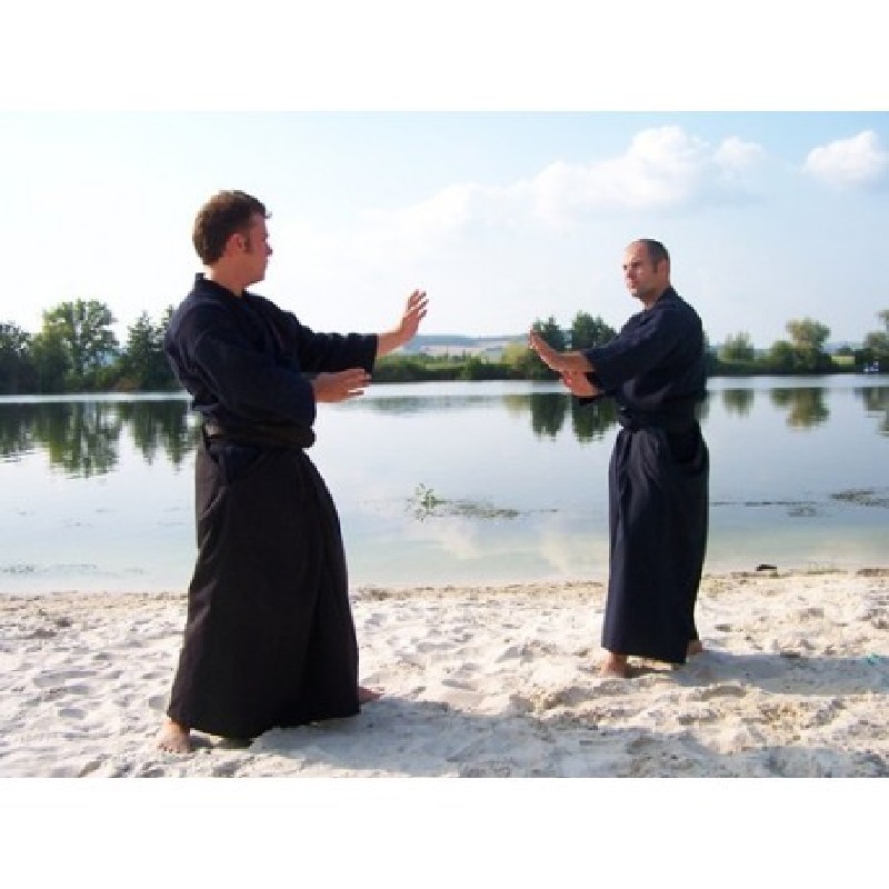 Hakama aikido negro tradicional en 65% poliester-35% rayón.