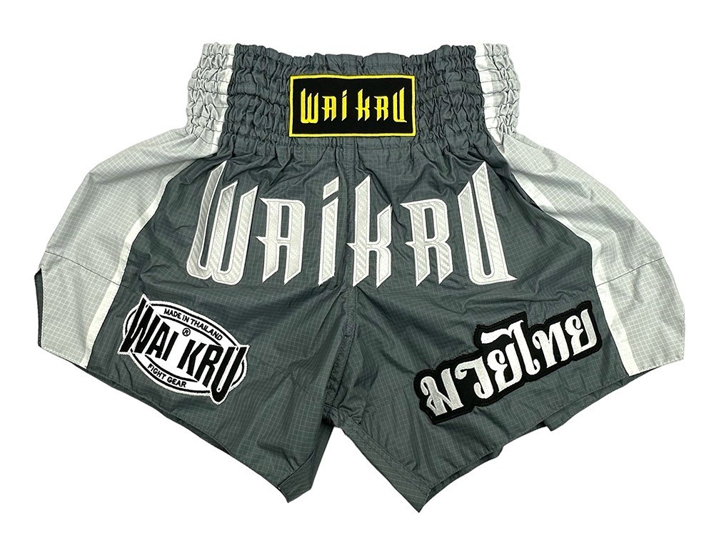 Pantalón muay thai CH-3 de color Gris y Blanco , con costuras reforzadas.