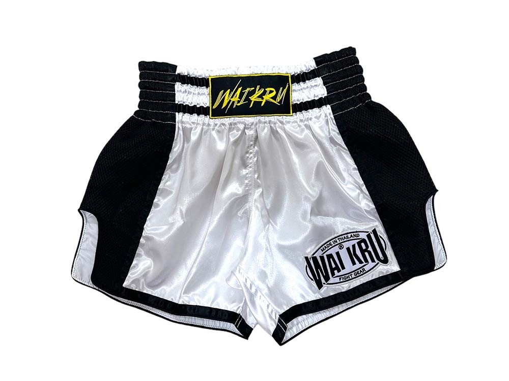 Los pantalones cortos de Muay Thai son extremadamente cómodos y están diseñados para la acción. Presentan un ajuste ligeramente más entallado que los shorts tradicionales de Muay Thai, con una abertura lateral en forma de U de corte más alto para un mejor movimiento de las piernas.