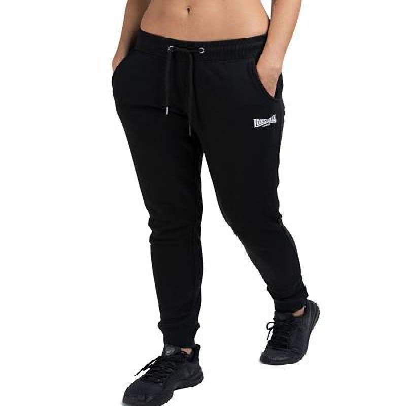 Los pantalones de chándal de mujer negros Weycroft de Lonsdale London tienen un pequeño logotipo de Lonsdale en 3D estampado en contraste en la pierna izquierda. Además, los pantalones de jogging están equipados con un cordón de ajuste, dos bolsillos laterales ligeramente redondeados, un bolsillo de parche en la parte posterior y piernas estrechas con puños elásticos y acanalados en los tobillos. Debido a la ligera tela de sudor de verano French Terry, estos son pantalones de jogging cómodos y ligeros con comodidad.