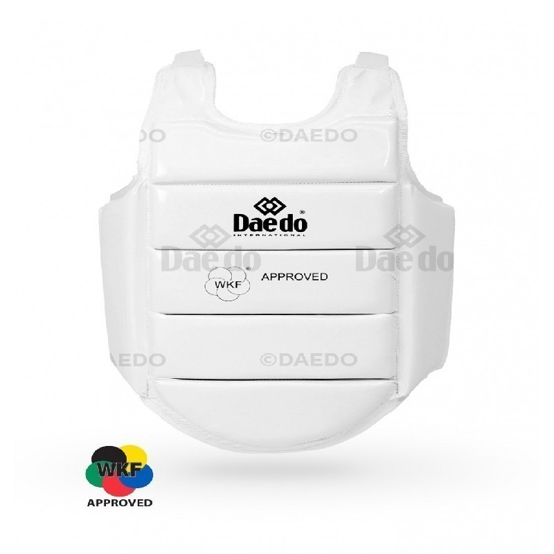 El peto Daedo infantil es un protector de cuerpo para competiciones oficiales. Fijación con sistema de velcro. Esta homologado por la WKF.