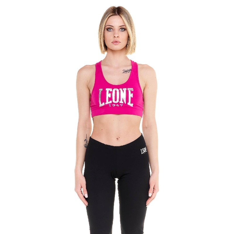 Top Leone Sport Women, en color magenta, ideal para entrenamientos intensos, logotipo impreso en el pecho.